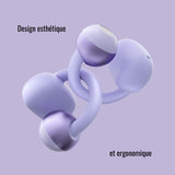Nos écouteurs offrent une écoute immersive tout en permettant de rester connecté à son environnement. Leur design ergonomique évite qu'ils tombent et leur légÚreté les rend idéaux pour les activités sportives. De plus, ils offrent un confort accru et réduisent les risques liés à l'utilisation prolongée des écouteurs intra auriculaires.